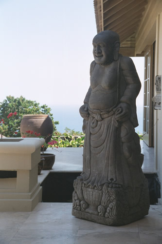 Relax and enjoy delicious meals prepared by our Chef exclusively for your group. From his state-of-the-art commercial kitchen and grill, he creates a repertoire of artistically presented Continental, Nouveau, Caribbean and Jamaican cuisine. Reached by stone stepping pods traversing the reflection wading pool, the Dining Pavilion is located in a wraparound reflecting pool and has a 330-degree view of Montego Bay and the sea as well as the exquisitely landscaped grounds. The Dining Pavilion may be glass enclosed or remain open on 3 sides allowing the gentle breezes to flow through. The dining table is a rare rainbow-colored 15-foot slab of Brazilian Bahian granite. Seated dinners here can accommodate 16 guests. For more casual dining (or for overflow from the main Dining Pavilion), the Gazebo (also in the reflecting pool) commands a 360-degree view of the sea and villa property and can accommodate nine guests for seated meals.